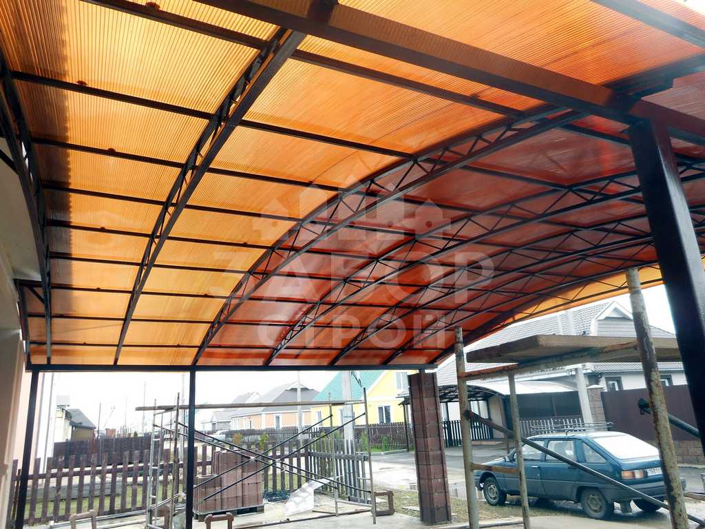 Поэтому компания "Навес Строй" настоятельно рекомендует не экономить, а усилить каркас навеса из сотового поликарбоната более жёсткими профилями с увеличенной толщиной металла и количеством несущих ферм.